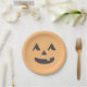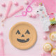 Cute pastel orange jackolantern pumpkin paper plate for a stylish kid friendly or adult halloween party.