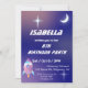 Blast into fun with a pastel outer space themed birthday party invitation.