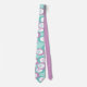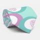 This necktie has a pattern of scattered ovals in retro turquoise and purple with white ovals and coloured circles inside.