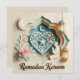 This greeting card is truly special for its craftsmanship aesthetic, mimicking a beautiful, multi-layered paper-cut design. The intricate heart and floral motifs, paired with the soft pastel colours, give it a tender and spiritual feel. Incorporating the praying figure and lanterns, it serves as a highly decorative and meaningful way to wish someone "Ramadan Kareem".