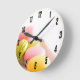 These sweet French meringue-based confections, filled with a delicious centre, create a delightful cookie sandwich that's perfect for any sweets lover. Featuring a cute and colourful design, this round clock showcases pastel French macarons, adding a touch of charm and whimsy to your space. Ideal for a bakery, confectionery, or anyone with a love for pastries and sweets, this clock brings a delightful, dessert-inspired flair to kitchens, bakeries, or any room where you want to celebrate your passion for confections. Cute Colourful Pastry Pastel French Macaron Cookie Round Clock.