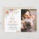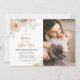 Celebrate with this elegant peach & pink watercolor floral arrangement invitation with and elegant cross on top. Add your child's photo, name and baptism details.