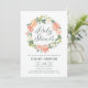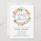 Pastel Peach Peonies Floral Wreath Baby Shower Invitation
