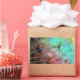 Pastel bubbles of aqua, turquoise, blue and pink and purple are a backdrop for these wispy peacock feathers
