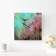 Pastel bubbles of aqua, turquoise, blue and pink and purple are a backdrop for these wispy peacock feathers