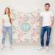 Pastel Peony & Butterfly Flower Pattern Fleece Blanket