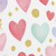 A whimsical and cheerful finale to the collection, this seamless pattern features a playful dance of watercolor hearts in soft shades of mint, lavender, coral, and blush. Unlike the monochromatic sets, this design adds delicate botanical leaf sprigs and hollow gold-outlined hearts alongside the signature shimmering gold glitter dots. Set against a clean, crisp white background, it offers a light and airy aesthetic perfect for celebration decor, children's apparel, or joyful digital stationery.