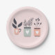 Pastel pink and grey modern pot plants paper plate
