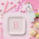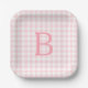 Pastel Pink and White Gingham Monogrammed Paper Plate