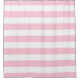 Pastel shower curtain featuring a pink and white stripes pattern.