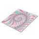 This ceramic tile features an abstract spiral fractal candy cane design in pastel blue, pink, and white.