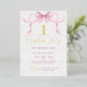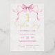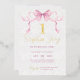 Celebrate your baby girl's birthday in style with this charming and elegant birthday party invitation. Featuring a watercolor pink bow, delicate lace floral textures and luxurious gold script text, this design is perfect for a chic tea party or toddler celebration. Personalise with your child's name, party details and RSVP information to make it uniquely yours. A beautiful option for a sweet and sophisticated birthday party!
