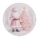 The artwork features a classic, jolly Santa illustrated in dreamy blush pink tones with soft vintage accents, snowy holiday details, and a whimsical winter backdrop. The palette blends rose, ivory, and pastel warmth to create that cozy, sugarplum nostalgia feeling — perfect for kitchens that lean feminine, soft, and elegantly festive.