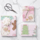 Pastel Pink Christmas Trees Bows Holiday Wrapping Paper Sheet