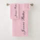 Pastel Pink Elegant Handwritten Name Signature Bath Towel Set