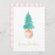 Pastel Pink Farmhouse Check Potted Christmas Tree Holiday Card