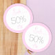 These pastel pink sale stickers are customisable. You can edit the percentage off as you like.