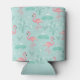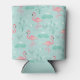 Pastel Pink Flamingos Green Pattern Can Cooler