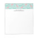 Notepad with a whimsical pattern. Pastel pink flamingos on a light green background. Green lily pads and lotus flowers. Cute tropical vibe.