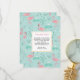 Thank you card with a whimsical pattern. Pastel pink flamingos on a light green background. Green lily pads and lotus flowers. Cute tropical vibe.