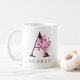 Modern simple bold script monogram name with painted pastel pink and brown floral watercolor bouquet.