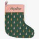 Pastel Pink & Forest Green Trees Holiday Large Christmas Stocking