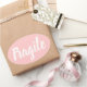 Modern minimalist and trendy pastel pink packaging sticker with the text: fragile.