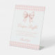Pastel pink gingham bow baby shower diaper raffle pedestal sign