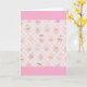 Send a sweet message with this greeting card featuring an adorable food illustration. The card showcases the full seamless tile graphic of cute bakery treats and whimsical frosting on a gentle pastel pink gingham background with cheerful mint blue yellow colors. This sweet dessert pattern card is perfect for conveying wishes for birthdays, thank you notes, or just sending a thoughtful message, adding a touch of repeating sweethearts charm to any occasion.