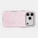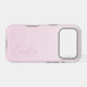 A trendy personalized pale pastel pink iPhone case, with a soft gradient design and modern calligraphy script font.
