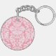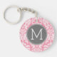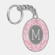 Pastel Pink & Grey Damask Pattern Custom Monogram Key Ring