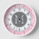 Pastel Pink & Grey Damask Pattern Custom Monogram Wall Clock