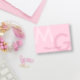 Pastel pink notes with your initials in two matching shades, and your name in a modern script.