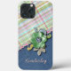 Contemporary pink, light blue, lime green, aqua turquoise, and violet purple diagonal tartan plaid pattern on a blue jeans denim fabric look. With room to personalise or customise with a name, initials, or monogram of your choice. Beautiful, modern, and cool cover for the trend-savvy and art-loving hip trendsetter, artsy motif lover who wants to protect their phone from dust and dirt, wear and tear. This design is available in Apple iPhone 6, 7, 8, 10 or X, XR, XS, 11, 12, 13 Mini, 14, 15 Plus, and Pro Max cellphone cases. Show off your style, look fashionable trendy, and feel stylish with a unique design on a mobile device accessory of your choice.