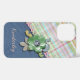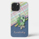 Contemporary pink, light blue, lime green, aqua turquoise, and violet purple diagonal tartan plaid pattern on a blue jeans denim fabric look. With room to personalise or customise with a name, initials, or monogram of your choice. Beautiful, modern, and cool cover for the trend-savvy and art-loving hip trendsetter, artsy motif lover who wants to protect their phone from dust and dirt, wear and tear. This design is available in Apple iPhone 6, 7, 8, 10 or X, XR, XS, 11, 12, 13 Mini, 14, 15 Plus, and Pro Max cellphone cases. Show off your style, look fashionable trendy, and feel stylish with a unique design on a mobile device accessory of your choice.