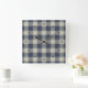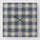 Pastel Pink Mint Green Dark Blue Plaid Pattern Square Wall Clock