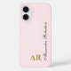 Pastel Pink Monogram Minimalist Elegant Gold Black Case-Mate iPhone Case