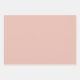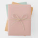 Set of three flat wrapping paper sheets in pretty pastel colours, one each of: pink, green and orange.
