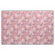 This fabric has flowers and leaves in pastel shades of pink and purple on a pink background.