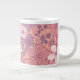 This giant mug features flowers and leaves in pastel shades of pink and purple on a pink background.