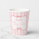 Pink stripes retro bow border elegant baby shower monogrammed paper cups, pastel pink baby girl baby shower personalised paper cups, retro stripes baby shower personalised paper cups, baby girl baby shower personalised table decor printed paper cups, monogrammed paper cups