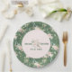 Pastel pink roses watercolors pattern on green paper plate