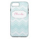 Adorn and protect your phone with this stylish, modern, and preppy iPhone 6 Plus case, personalised with your name, initials, or custom text. This case is designed with a teal chevron pattern, and your name is printed in pink script.