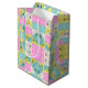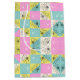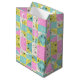 Pastel Pink Teal & Cream Chequered Floral Pattern Medium Gift Bag