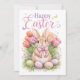 Pastel Pink Tulips Easter Bunny Happy Easter Holiday Card