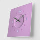 A pretty pastel pink clock with pale blue numerals.This simplistic clock is available in square and round shapes. A great addition to a young girls room.