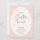 This pastel polk a dot Easter brunch and egg hunt invitation features a blush pink background with modern hand lettered script calligraphy and editable text details. Click the edit button to customise this design.