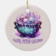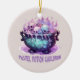 Whimsical pastel Halloween ornament featuring a purple skull inside a bubbling cauldron. Soft colours and magical details make it perfect for fans of cute spooky art and pastel goth vibes. Ideal gift for Halloween lovers, witches, and pastel aesthetic fans.