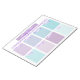This personalised notepad is the perfect tool for keeping track of all your weekly activities. This design features seven fields for each day of the week in pastel purples and teals, along with a field for your notes, and at the top is your name and the 12 months of the year. The text is fully customisable.