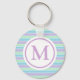Pastel Purple Blue Green Stripes Monogram Key Ring